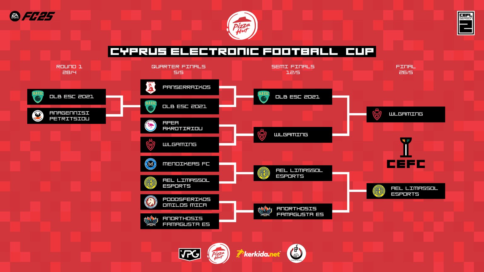 The CEFL eCup, is the second competition with the participation of all the clubs participating in the CEFL. Each club plays a minimum amount of 2 games and maximum of 12 games during the Cup Season that is divided in 4 phases: